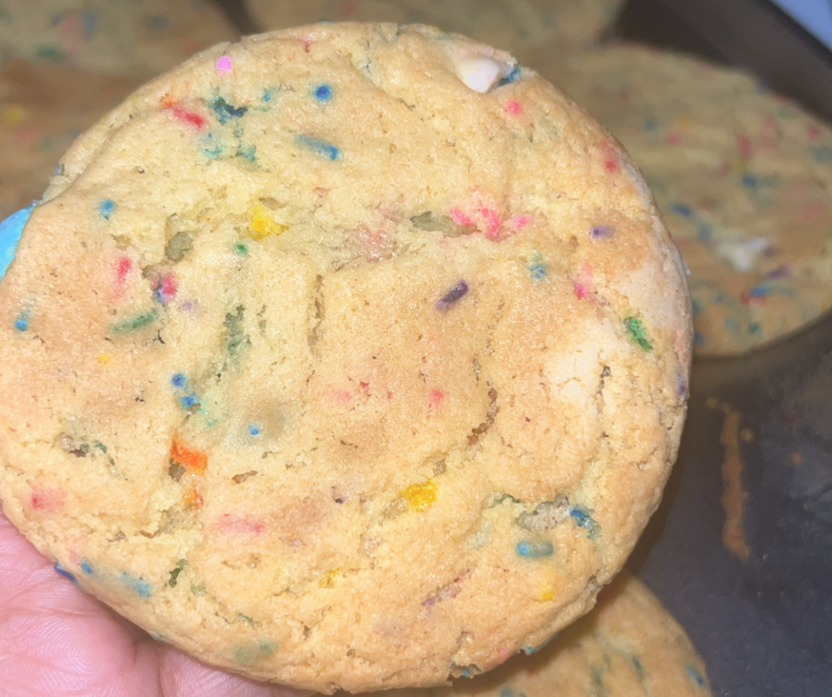 Celebrate Her is My Birthday Cake Cookie. This cookie is filled with so many sprinkles of joy, white chocolate chips and also regular chocolate chips. Very moist and soft crunch that will surely make you feel celebrated.